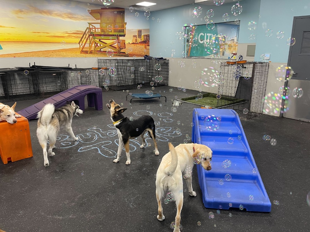 Dogtopia of Orlando offers top-notch dog daycare, boarding, and spa services. Our facility features spacious playrooms, climate-controlled areas, and webcam access for pet parents to check in on their furry friends. We provide a safe and stimulating environment with supervised group play sessions and individual attention. Conveniently located in Orlando, we ensure your pet receives the best care and attention during their stay.