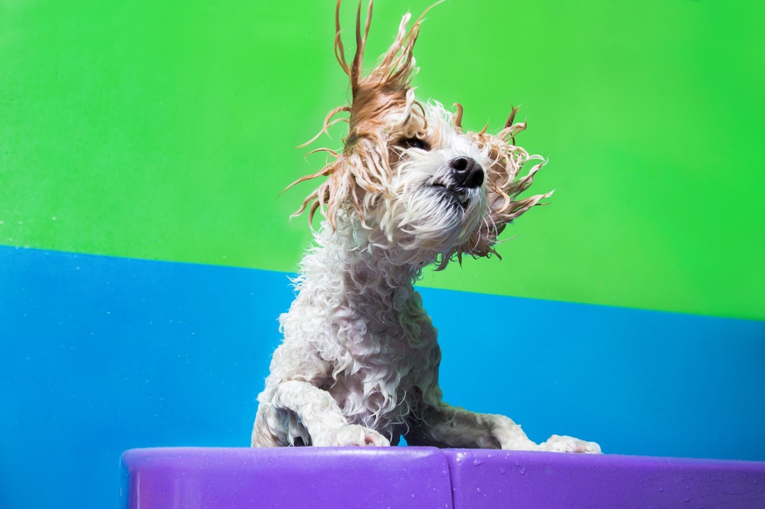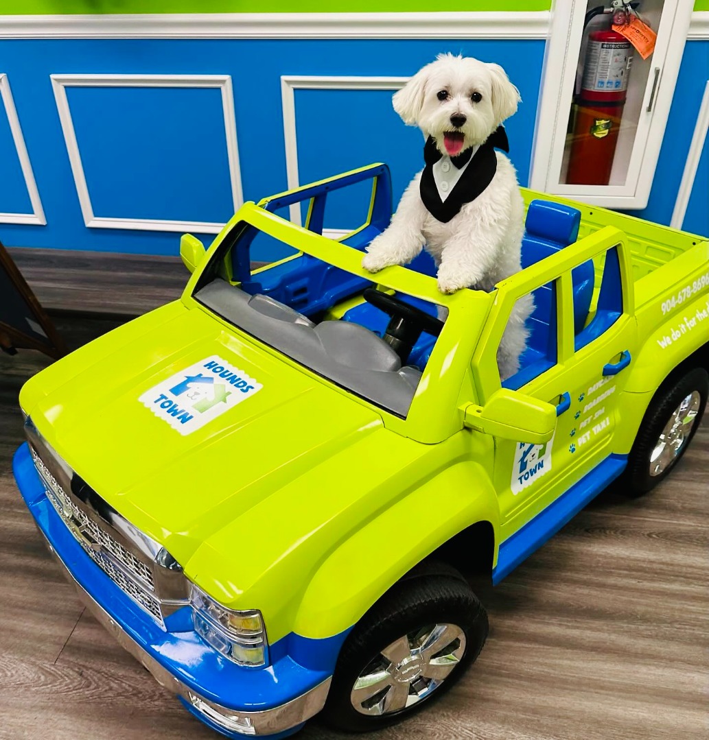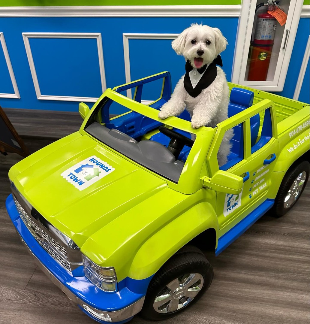 Vaccinations required: Rabies, Distemper, Bordetella. Interactive boarding with large play areas and themed suites. Grooming services available.
